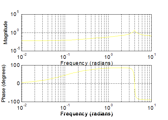 which has a resonance (peak frequency response) at W = 4 to a digital filter using the bi-linear