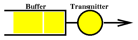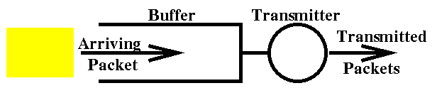 while arrivals to a busy system are held in the buffer for future transmission.