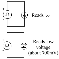 To test a diode, we use an ohmmeter.