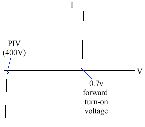 Note also that the diode has a peak inverse voltage - There is normally no current flowing through a diode in reverse.