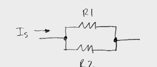 Is(1/R2)[1/(1/R1+1/R2)]. An example of a practical current divider is an ammeter